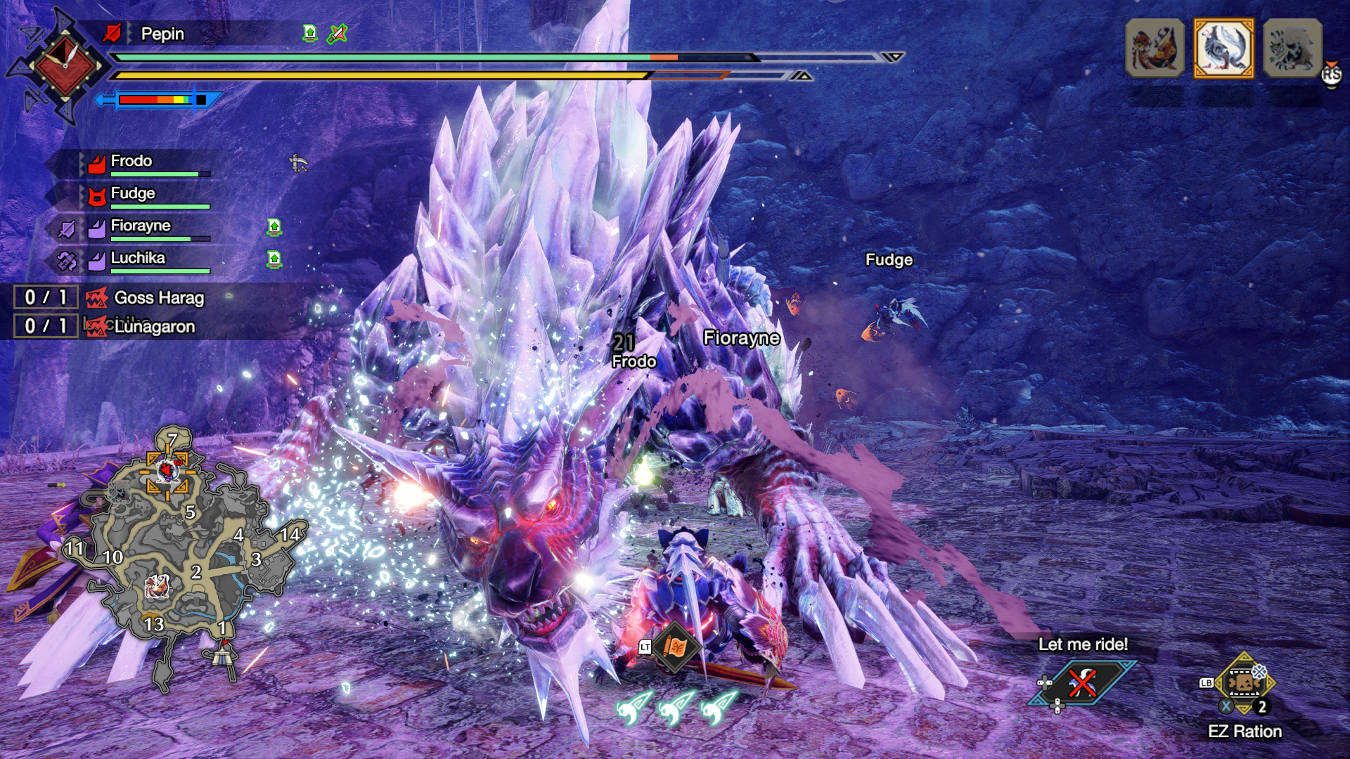 They’re introduced in a simple enough way; you churn through the Master Rank quests in Sunbreak as you would any other Monster Hunter setup, getting to fight bigger and more dangerous prey as you level up. Then, with one urgent quest, the definitely-not-a-dominatrix royal vanguard, Fiorayne, decides to accompany you – there’s a very dangerous monster out there, and some feckless newcomer surely can’t deal with it alone.
