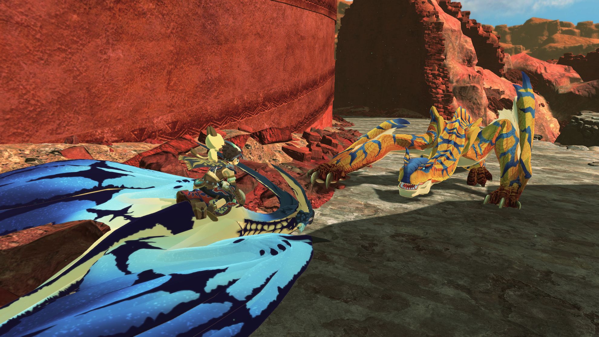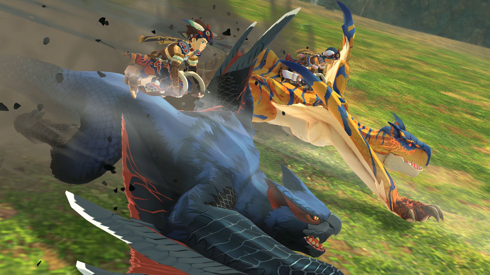 The duo is on a mission to capture your companion Razewing Ratha before it can awaken its destructive power foretold in the prophecy of the Wings of Ruin. A group of Hunters and Riders who seek to capture Razewing Ratha for their own nefarious purposes are also on the prowl.