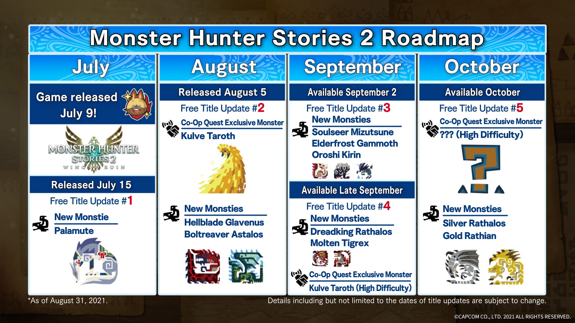Monsties in Update 3 include Soulseer Mizutsune, Elderfrost Gammoth, and Oroshi Kirin. Later in September, the update will add the monsties Dreadking Rathalos, and Molten Tigrex.