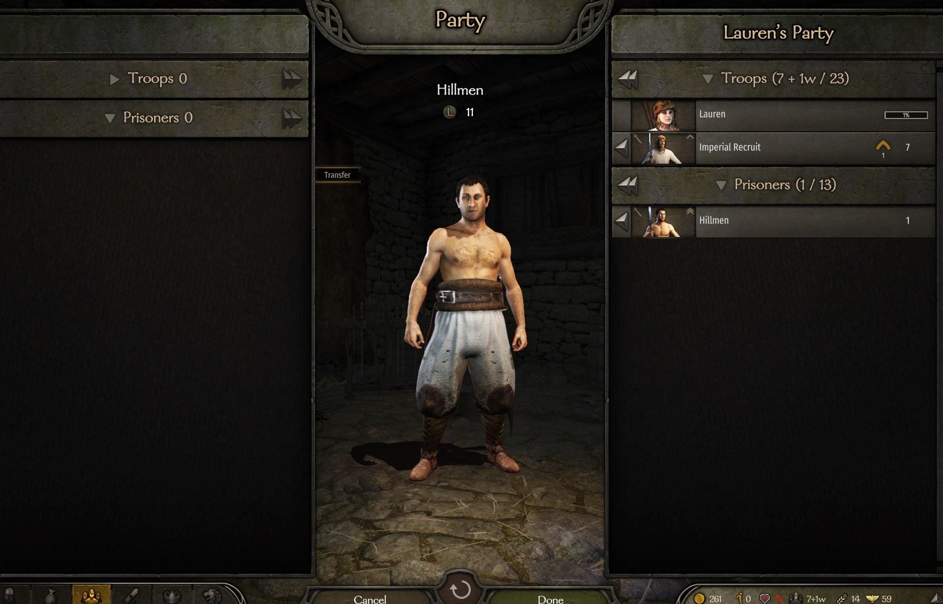 You travel between settlements zoomed out on horseback, just like the last game, but Bannerlord has hundreds of interconnected, medium-sized areas which you can navigate easily using a fast-travel system that works inside towns and villages, not just between them. It’s a great quality-of-life feature that alleviates some of the game’s many loading screens. Say you hear at the tavern that a brigand you want to recruit’s been thrown in the town jail - you can still walk out of the pub, across town, into the keep, down to the cellar and into the dungeon if you want - or just pop open a menu and head straight there. When there’s so much to do in Mount and Blade 2, it’s important to keep the player from getting bogged down in minutiae, and fast-travel keeps the pace high while leaving the option for hardcore roleplayers to stay in the game world.