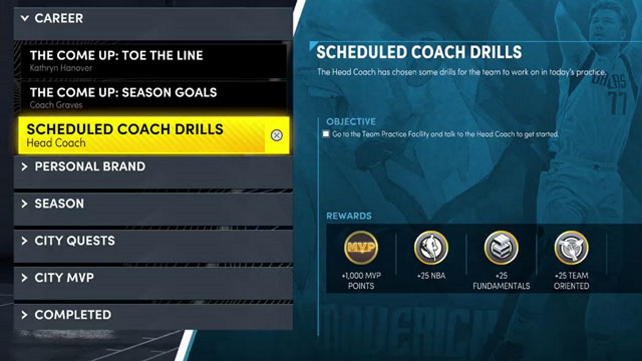 It’s worth your time anyway, since completing a round of Coach Drills earns you 1,000 MVP points to spend on badges and 25 Brand Attribute points each for NBA, Team Oriented, and Fundamentals.