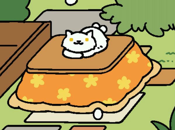 Chairman Meow -- The Chairman is a reference to Japan's Neko Nabe ("Cats in Pots") meme. He loves the earthenware pot, as well as the sunken fireplace (which has a hanging pot!).