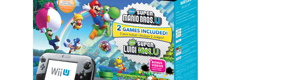 Nintendo has announced a Wii U Deluxe Set bundled with New Super Mario Bros. U and New Super Luigi U on one disc. The new configuration will sell for $299.99/£249.99 and replaces the existing Wii U Deluxe Set in North America and the UK which included Nintendo Land - but the game can still be purchased separately in stores and as a download in the eShop for $29.99. The bundle releases in North America on November 1 and in the UK November 8.