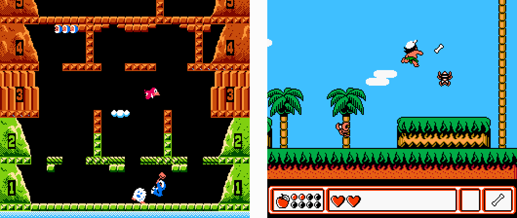 "The first three games released for the system were Popeye, Donkey Kong and Donkey Kong Jr.," says Kalata. "One of the last was Takahashi Meijin no Boukenjima IV (Adventure Island IV). The former were single screen arcade conversions with a small number of levels, with sparse black backgrounds and simple music. The latter is a sprawling adventure, featuring dozens upon dozens of screens with non-linear exploration, an expansive inventory, substantially more detailed graphics, a full soundtrack, and a password system to save progress. They may as well be on different systems."