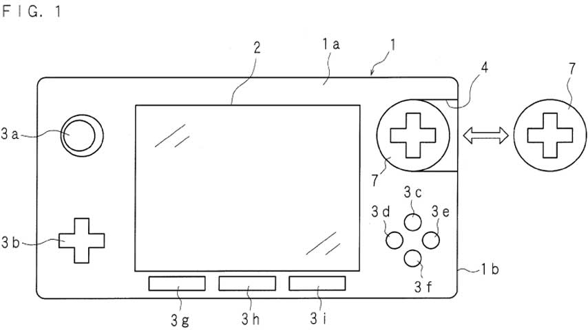 The handheld described by the patent has four face slots into which users can slide control systems like an analog stick, a D-pad or a set of face buttons.