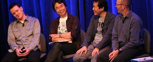 It's kind of a round table, only it's Miyamoto and three other chatting to an audience of about 200 people.