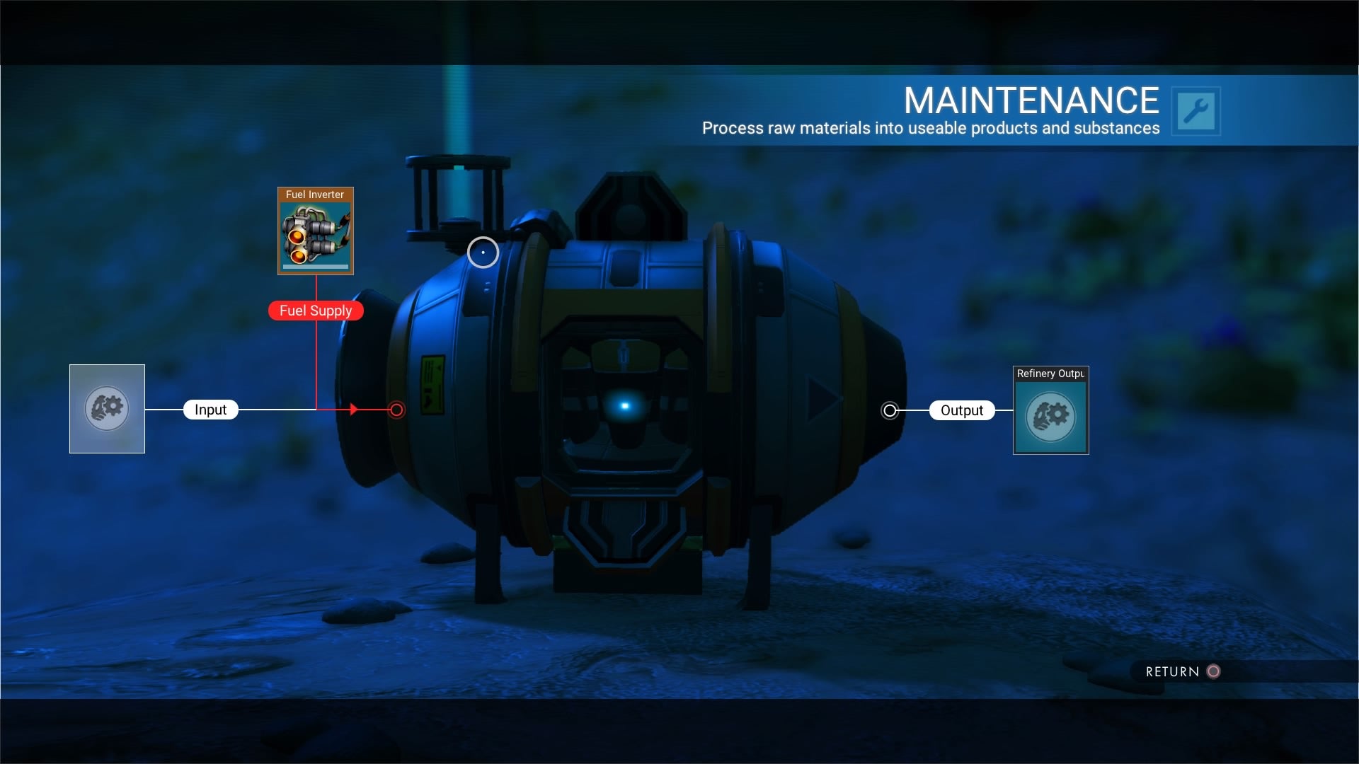 Once you’ve built your Portable Refiner, approach it and hold the button or key to initiate “Maintenance” (Square on PS4). This will open a new menu.