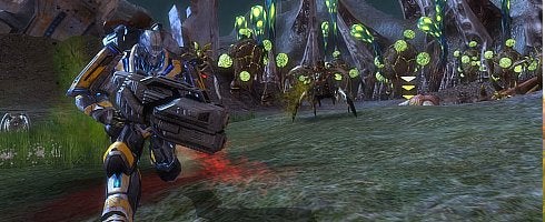 Battleswarm allows up to six players to take control of soldiers in team-based, first- or third-person shooter mode, arming themselves from a huge arsenal of high-tech weapons and armor. They compete in discrete missions versus up to four Alien Commanders, who control hundreds of bug-like units in real-time strategy mode. The Alien Commanders must build hives, breed units, and manage their forces in missions to overwhelm the human opponents. Players can create guilds, buy and sell items, and level up their characters.