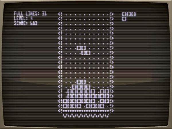 The Electronica 60 defined the original Tetris as much as Pajitnov's ideas did. The computer had no graphical interface, so the now iconic Tetriminos were made out of exclamation points, quotation marks, and other punctuation. To preserve the game, this version is essential, but the Electronica 60 is both rare and fragile. How to save it? "The Tetris company recreated a complete emulation for OS X," says Carmody. "It's a much more interesting and riveting design experiment, because he was able to make this game which is pretty much the same as it is now using the very, very limited technology. That's what we're interested in; the dialogue between constraints and creativity."