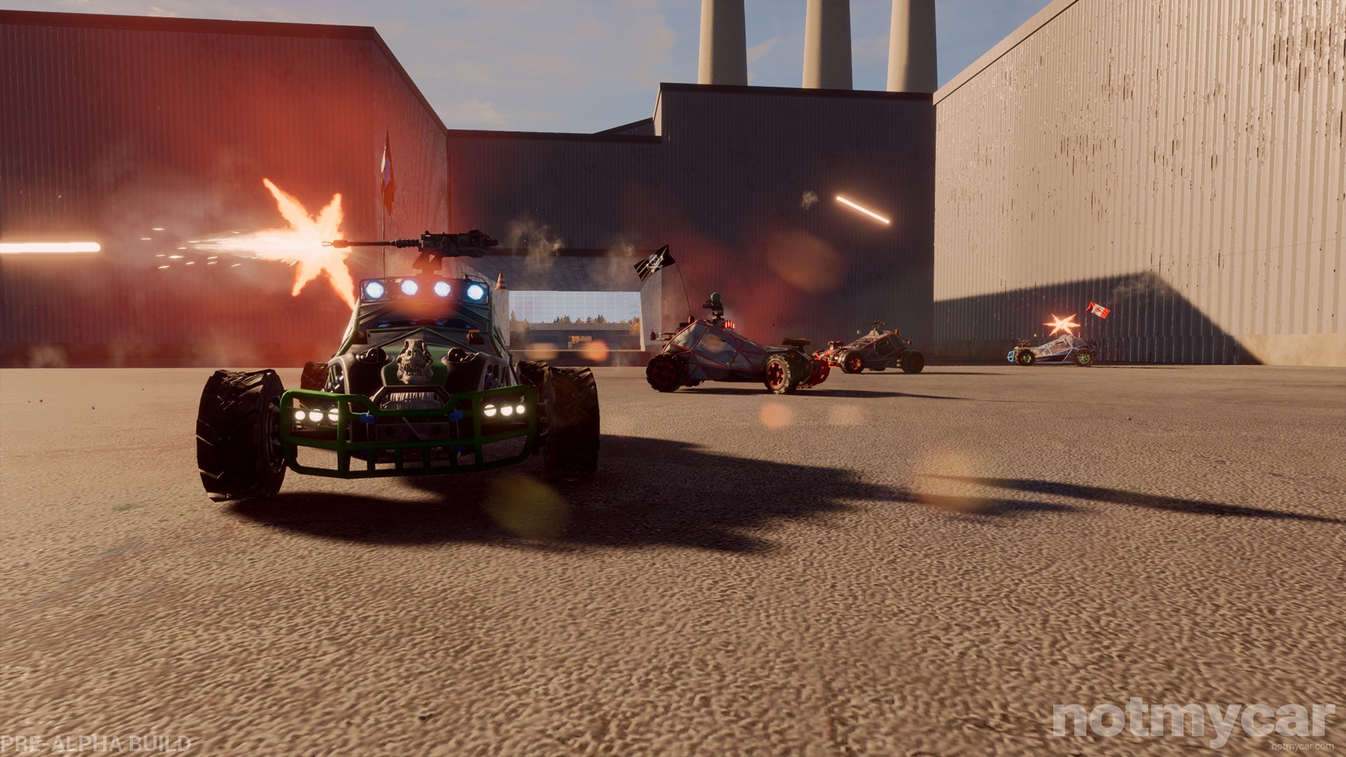 Notmycar is a battle royale game that came out of nowhere. Instead of a dude with a gun, you play as a car with a gun. Sort of like Twisted Metal, except all cars drop out of a plane at the start of the match and the arena keeps getting smaller until one car is pronounced a winner.