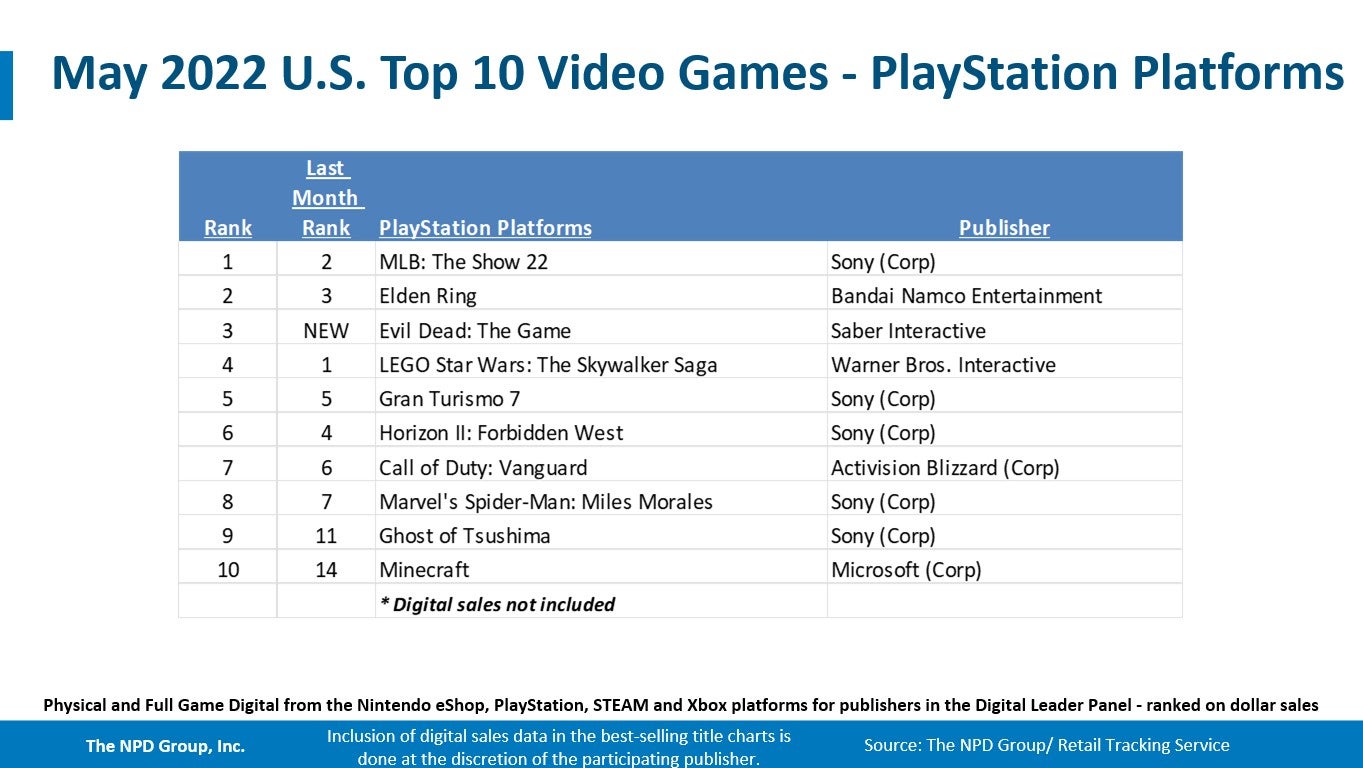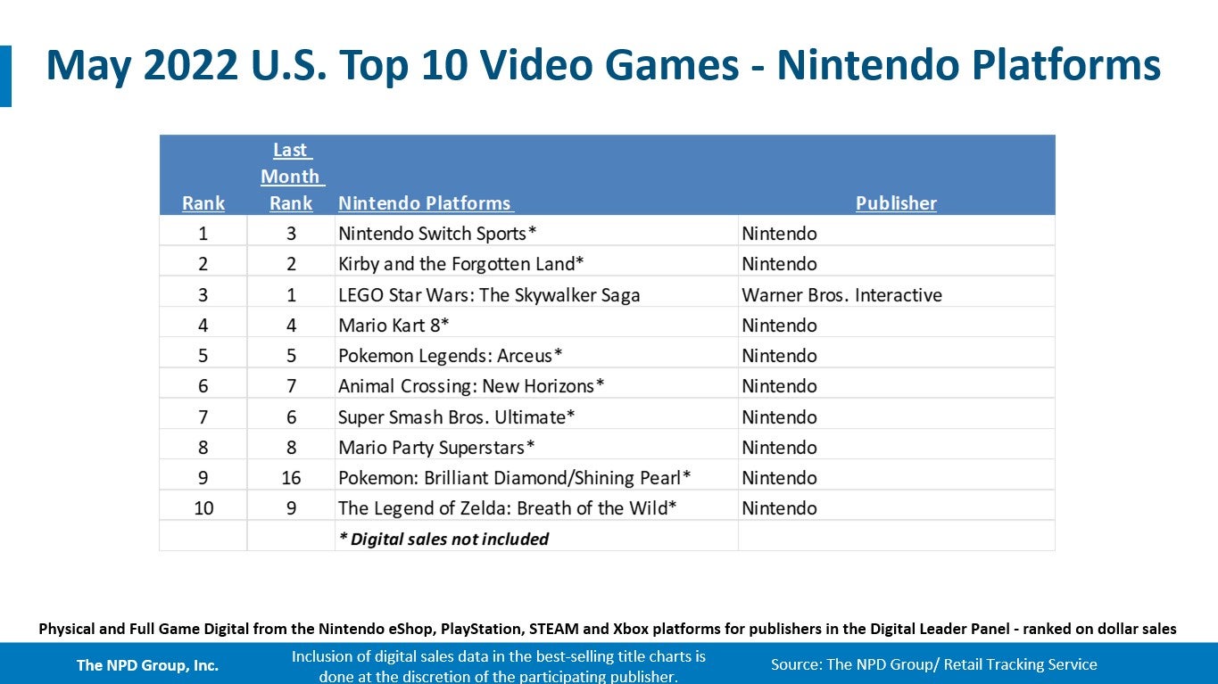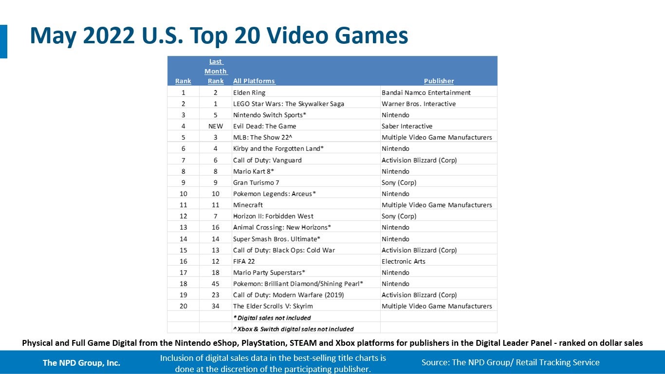 The NPD has released its May 2022 report covering video game hardware, software, and accessory sales in the US.