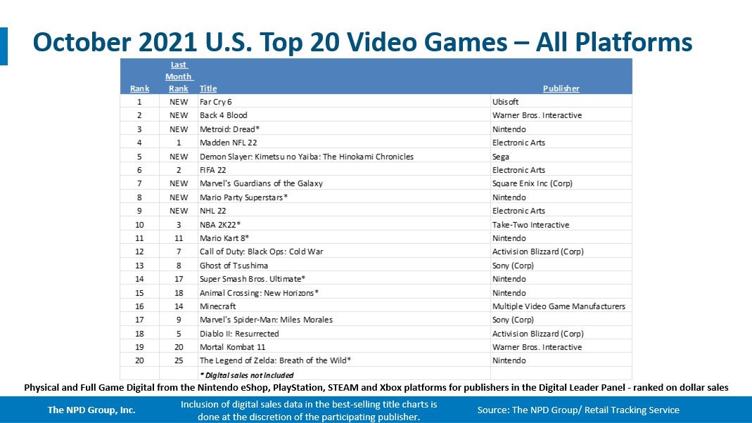 Far Cry 6 and Switch were the best-sellers for October in the US, according to the latest NPD report.