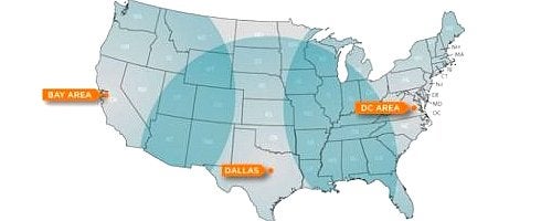 "As you can see in the above map, OnLive has 3 data centers for its US Beta test, with a blue circle around each showing the 1000-mile range. Your Beta account will only connect to the data center it was originally assigned to. So, if you are assigned to our West Coast data center and then try your Beta account from the Midwest or East Coast, you’ll find the lag impaired to the point where most games are unplayable. And, depending on how your Beta account was configured for the characteristics of your home ISP, you may see degraded image quality or controller/mouse performance on a different ISP."