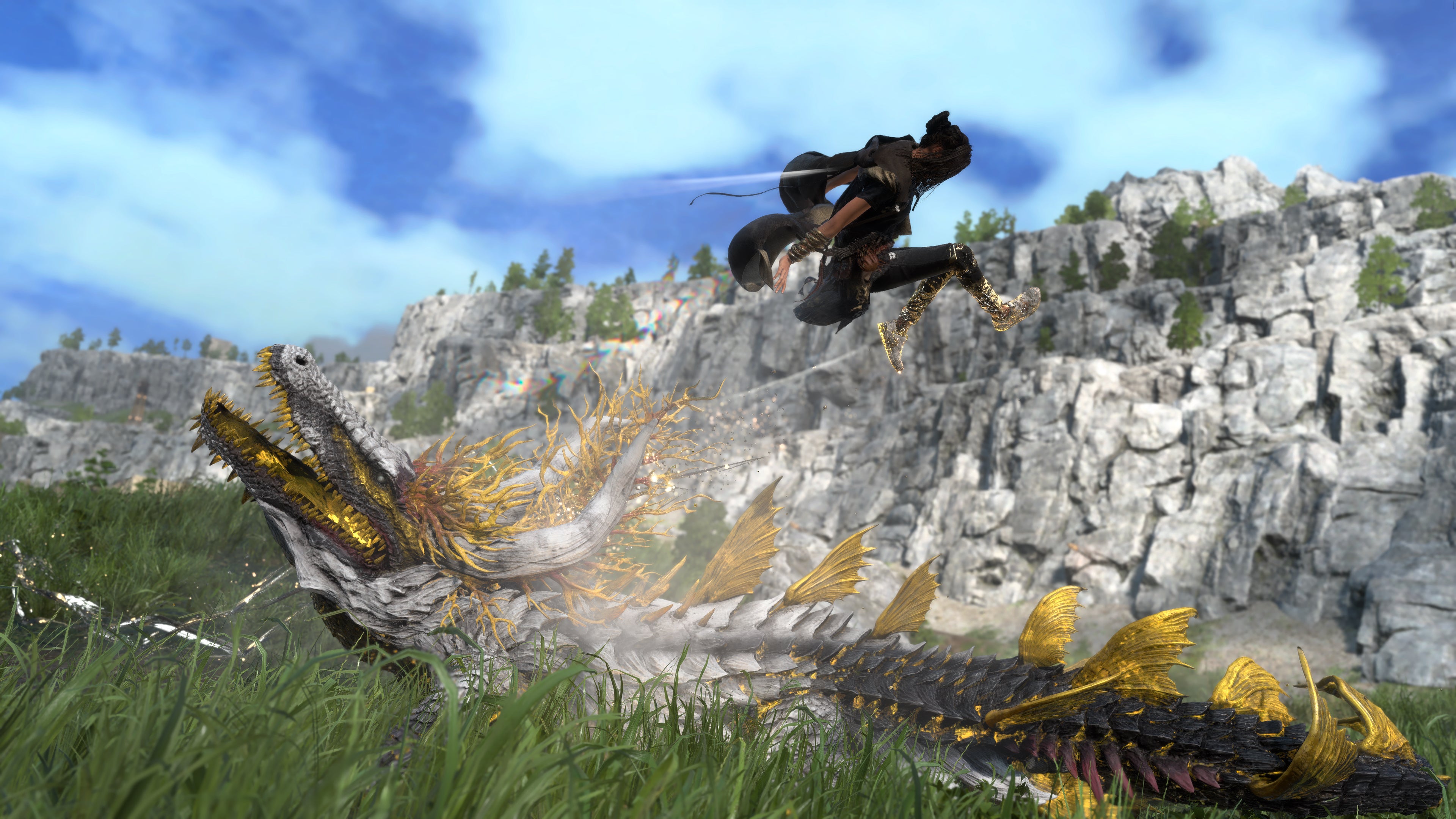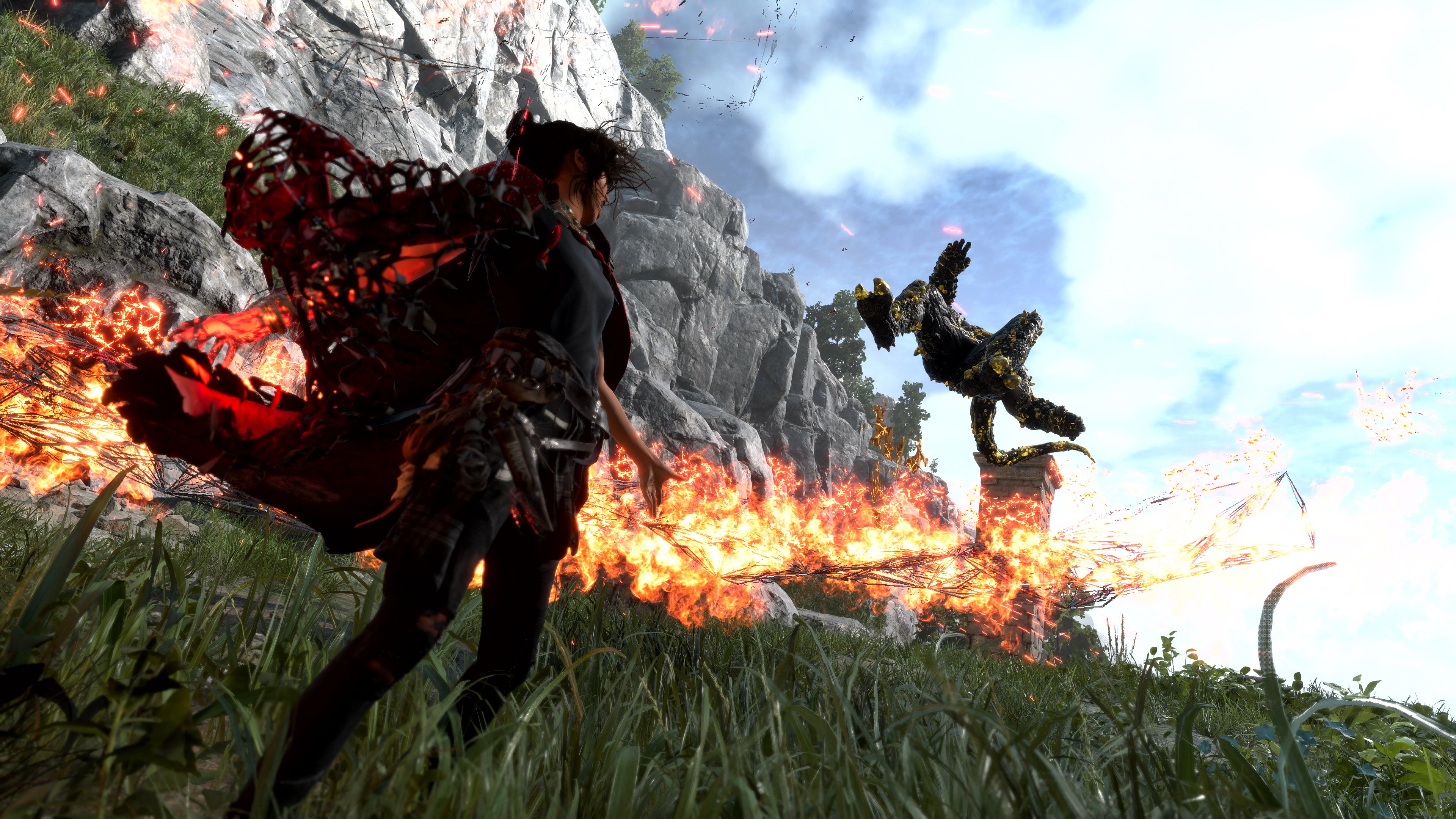 So whilst this is an open-world RPG that you’ll probably not stop yourself from comparing to Final Fantasy 15, the design of the whole thing has been scaled to you and your character and the movement you’ll have. In the hands-on I got with the game, there was no fancy ‘let’s speed you up’ movement – no grinding, or blink teleportation, or anything like that – but there was a lot of dashing, sliding, and quick-ascent grappling to overcome huge cliffs and towers. I’m told, in the final game, there will be yet more ways to move around.