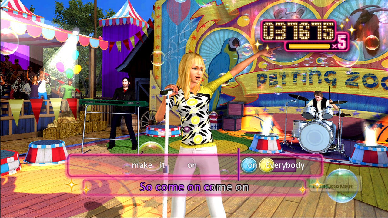 After five-starring the Guitar Hero Jr. sequences on all of Hannah's songs (sample lyrics: "Boom de-clap de-clap clap / Boom-boom clap, come on here we go") and saving my small town, I had 850 points.