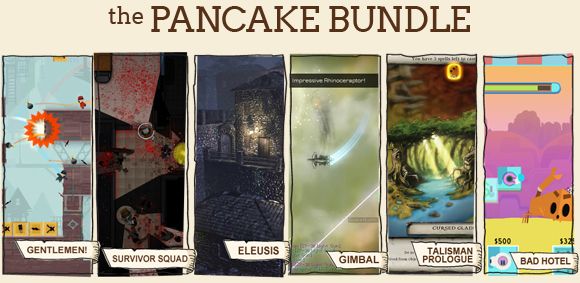 The Pancake Bundle from Indie Royale is now live. The bundle includes the following six indie titles: Gentlemen!, Survivor Squad, Eleusis, Gimbal, Talisman: Prologue and Bad Hotel. All games are available for PC via Steam and Desura. Three are also available for Linux and Mac and Bad Hotel is also available on Android. There is also a Daily Royale deal running which give you 75% off the four player retro co-op arcade action game Wanderlust: Rebirth.