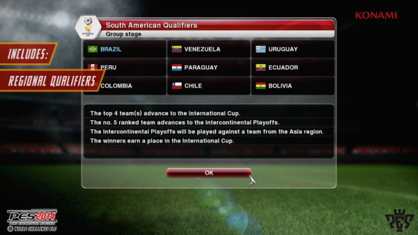 The DLC integrates an all-new International Cup competition into PES 2014 with new presentation and front-end elements, options to view squad details down to the finest detail, and AI elements.