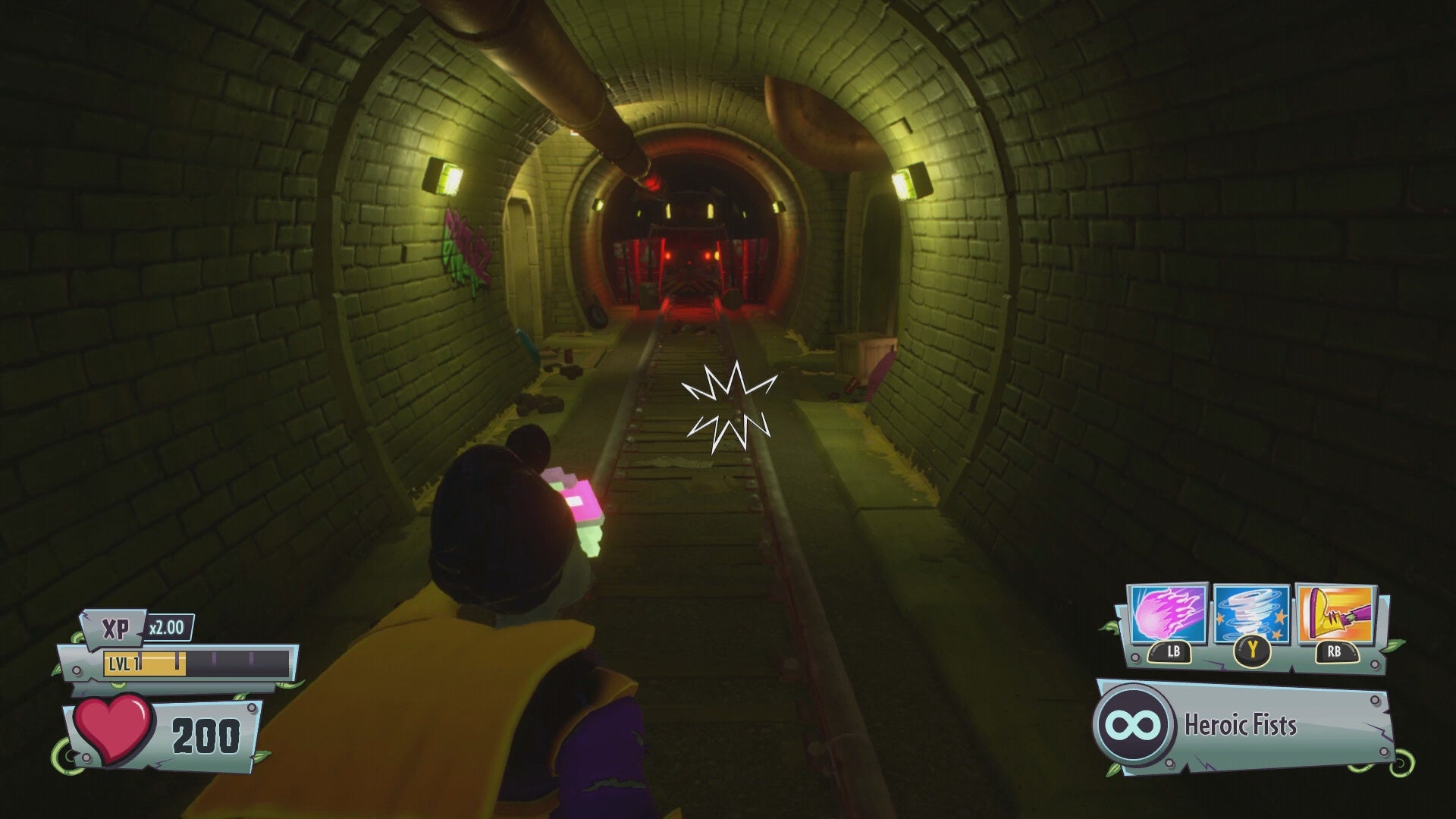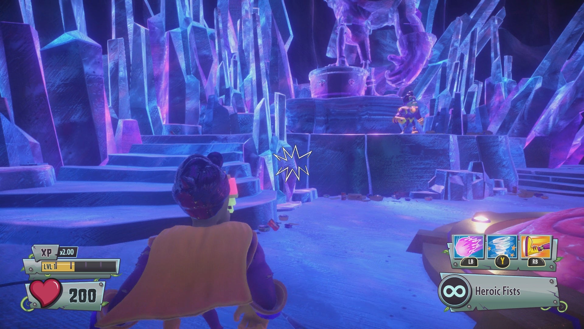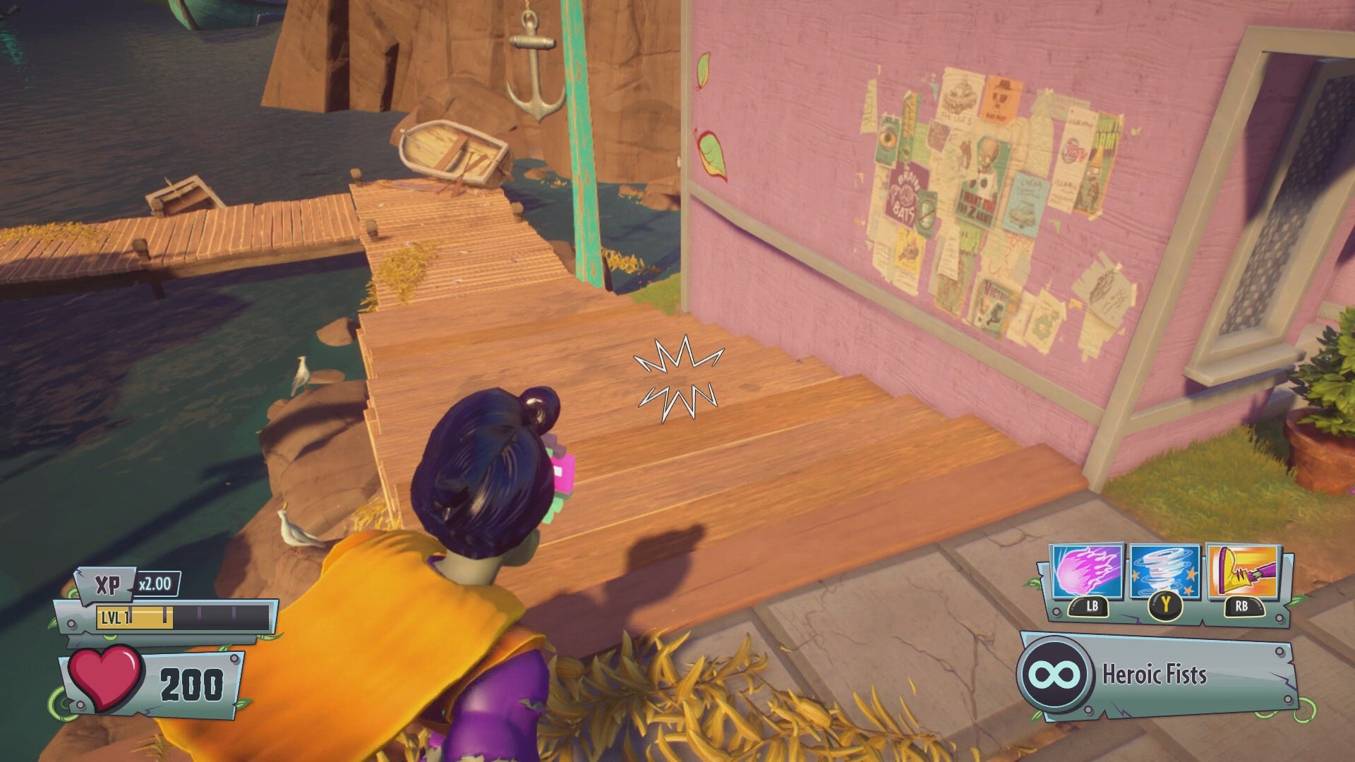 Gold Gnome #35 - Continue toward the fourth capture point. Locate the Bat Frat house near where the parade floats begin. Use a Chili Bean Bomb to detonate a wall panel at the center of the house, revealing the Gold Gnome.