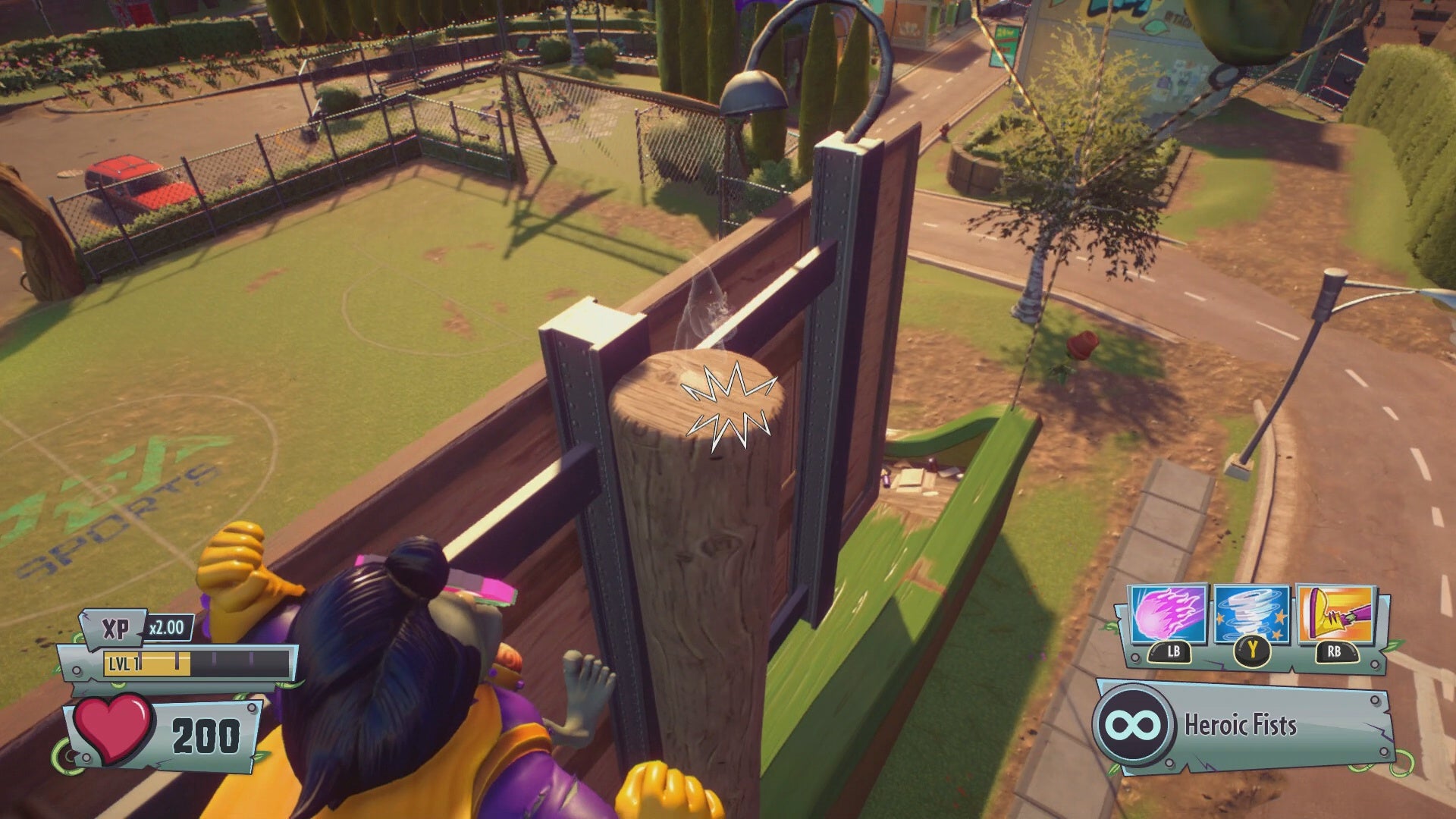 Gold Gnome #2 - Head to the soccer field to the left of the main Treehouse. A Gold Gnome is found at the top of the scoreboard. To reach the collectible, equip a character with a high jumping capability, such as the Peashooter or Super Brains. Walk along the back of the bleachers, then jump to grab the collectible while still in the air.