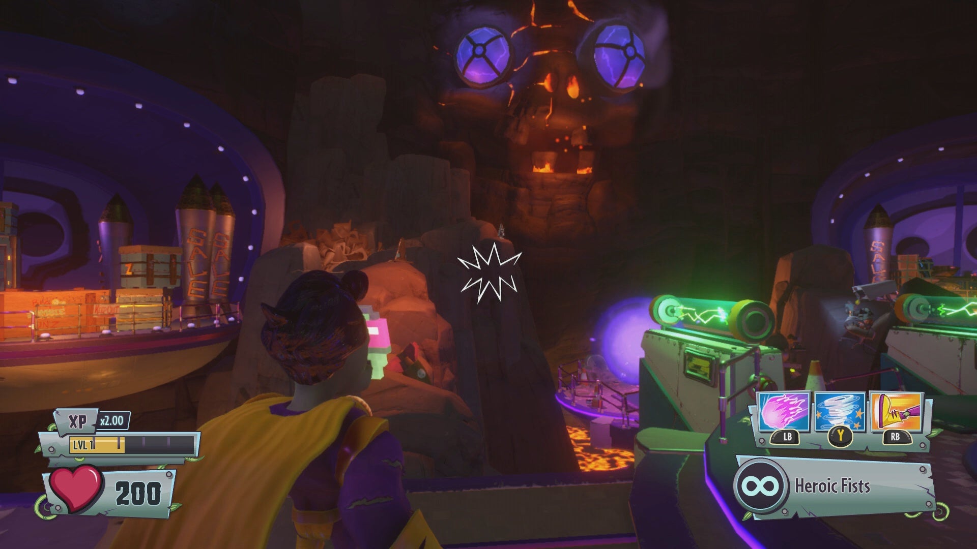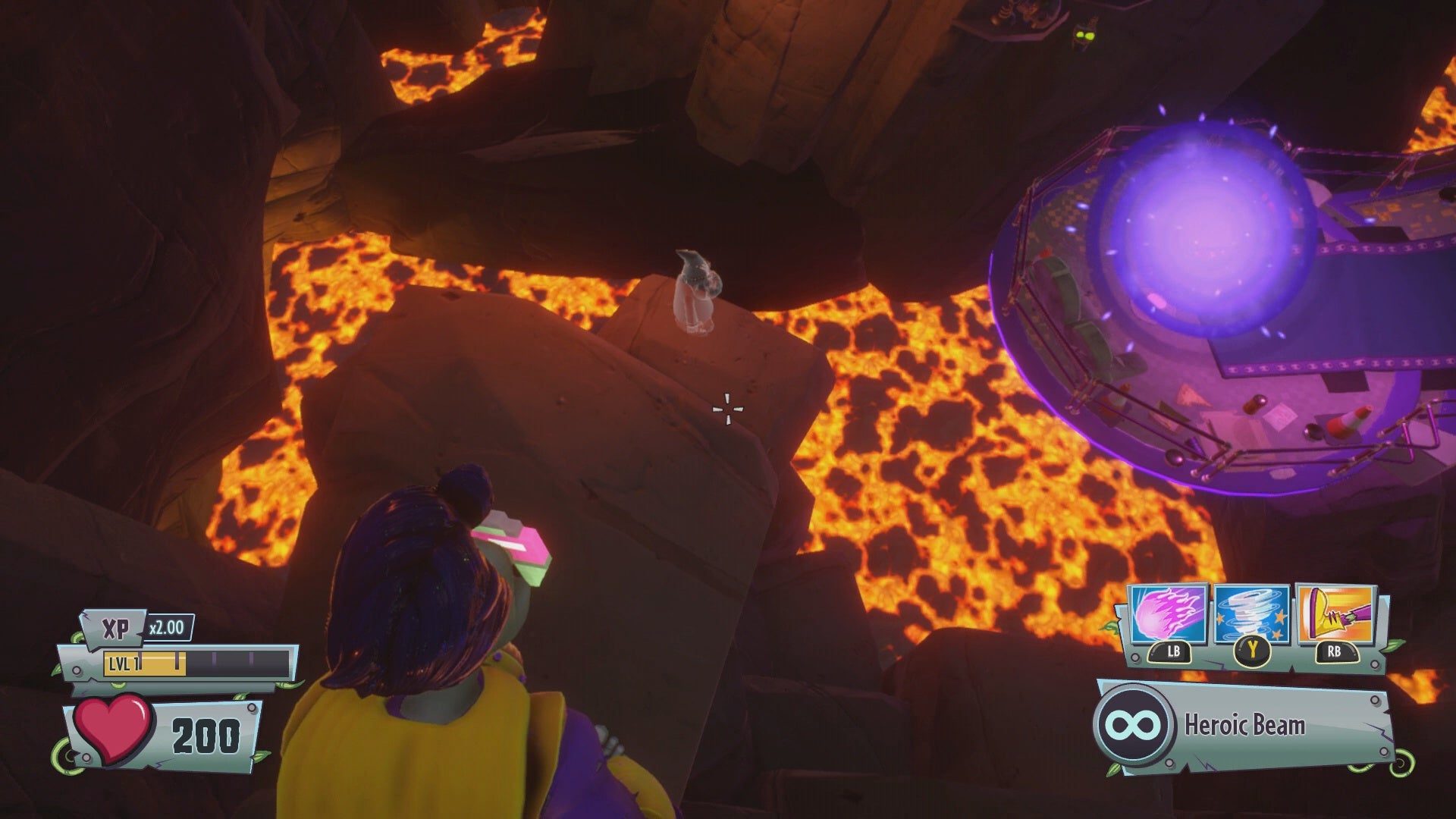 Gold Gnome #42 - Just before the final stage of Moon Base Z, jump up onto the purple pipes outside of the building. There is a Gold Gnome on a small platform along the rock wall to the right. Use a high jump ability, such as the Peashooter’s Hyper, to reach this collectible in low-gravity.