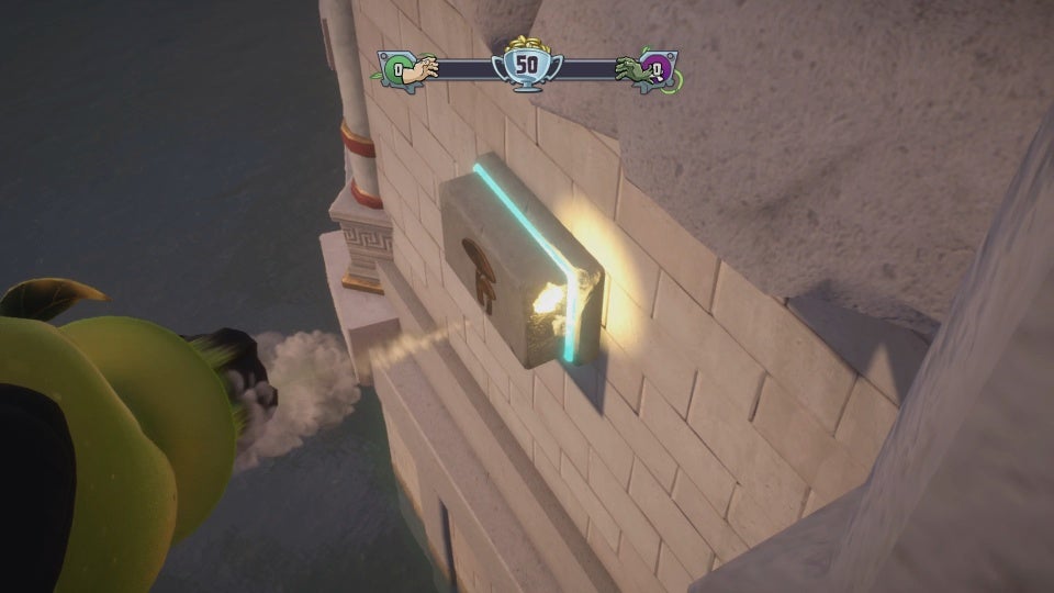 Gold Gnome #53 - From the gift shop where you found #52, continue along the path until you reach the coliseum. Look up to discover a Gold Gnome high upon the outer wall of the coliseum. Use a high jumping character to reach the collectible.