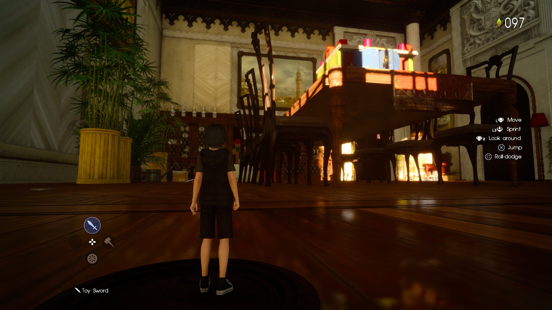 None of this is the real point though. In reality, Platinum Demo is tech demo. You'll wander from section to section, collecting crystals to unlock various plates found in each scene. The plates unlock upgraded versions of your starting weapons (the Toy Sword and Squeaky Hammer), the ability to turn into vehicles and an odd gazelle-like creature, enemy respawns, and more importantly, alternate world conditions.