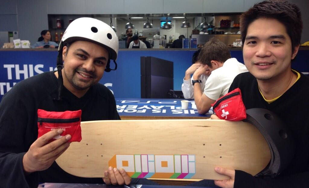 The Daily Grind Spot that day will be Base Amateur 5, and whoever comes out on top will get the stuff pictured: an OlliOlli skatedeck helmet and first aid kit. And in a strange twist, one other person will get an identical package for coming closest to getting the same score that the game's lead programmer gets on that spot on a blindfolded run. That's kinda fun. All those details here.