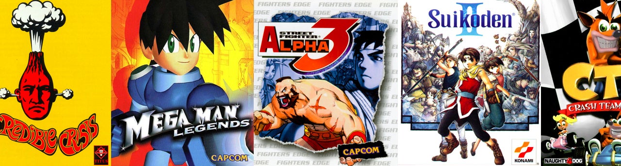 The Honorable Mentions: A Bug's Life (the swan song of good licensed Disney tie-ins), Breath of Fire 3, Bust a Groove, Chrono Cross, a Crash Bandicoot game that isn't Crash Team Racing, Final Fantasy VIII (so it can live somewhere happily), Gex 3D: Enter the Gecko, Gran Turismo 2, Klonoa: Door to Phantomile, Legend of Dragoon (so, as our editor-in-chief Kat Bailey says, "people can understand why it was a bad game"), The Misadventures of Tron Bonne, Parasite Eve, Persona 2: Eternal Punishment, Spyro 2: Ripto's Rage, Tactics Ogre, Tomb Raider 2, Xenogears, Wipeout XL.