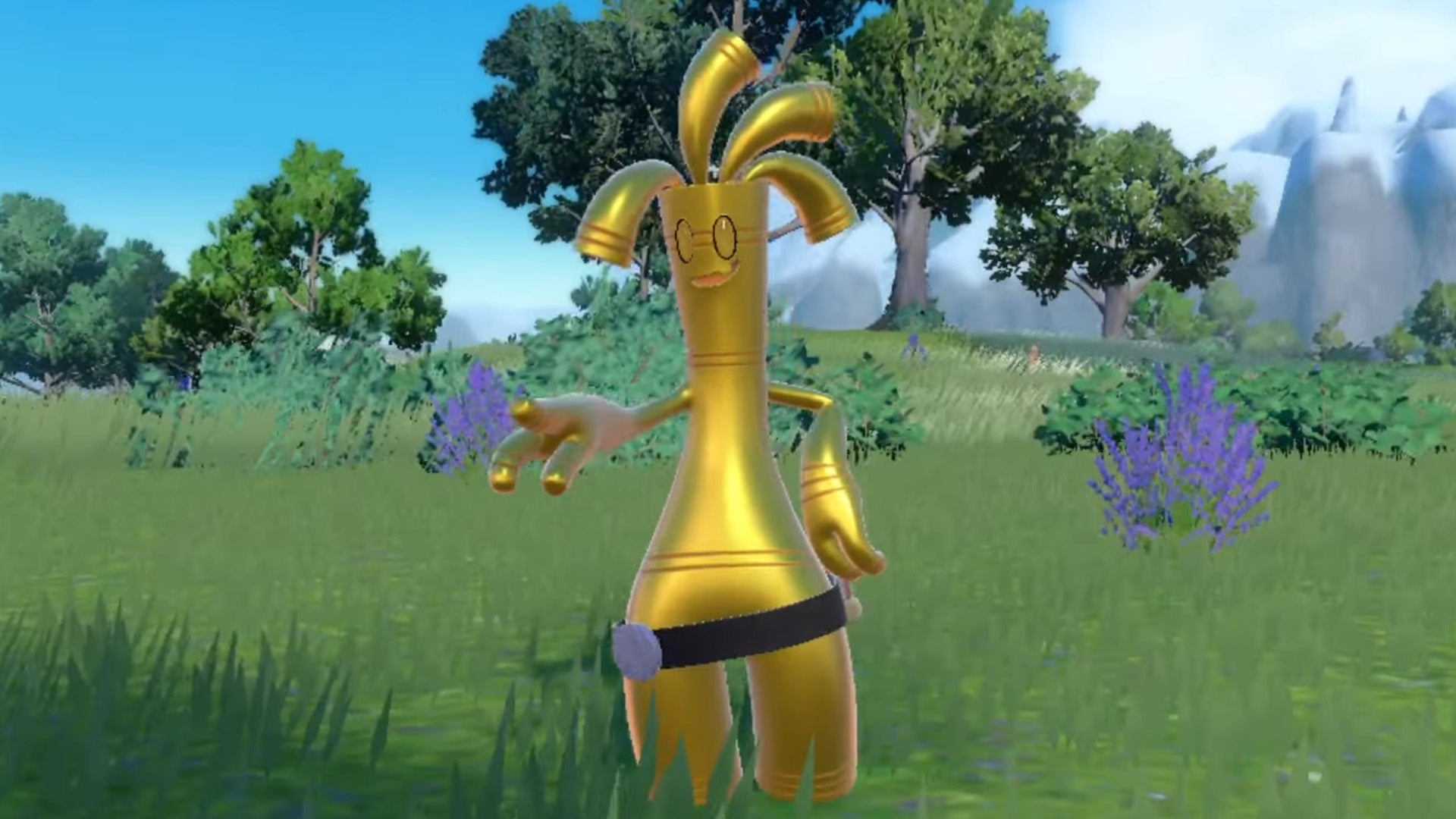 There it is! It's Gholdengo! The "Coin Entity" Pokémon (yes really). If it looks a little familiar, that's because it's the evolution of Gimmighoul, who got its own special trailer earlier this month. The thing about Gimmighoul is that it likes money, gold coins to be precise. And if you want it to evolve, you'll have to give it 1000 of them, hence why Gholdengo Looks Like That.