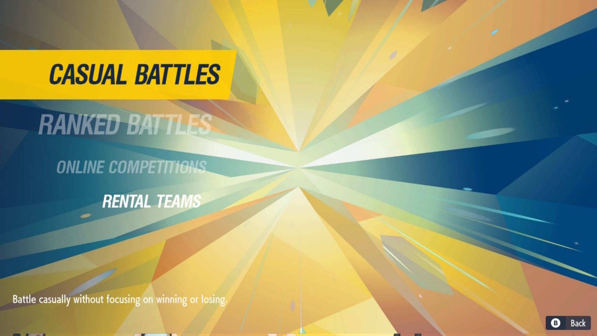 In the Battle Stadium, you can choose between casual and ranked play, and can even rent another players team for battle!