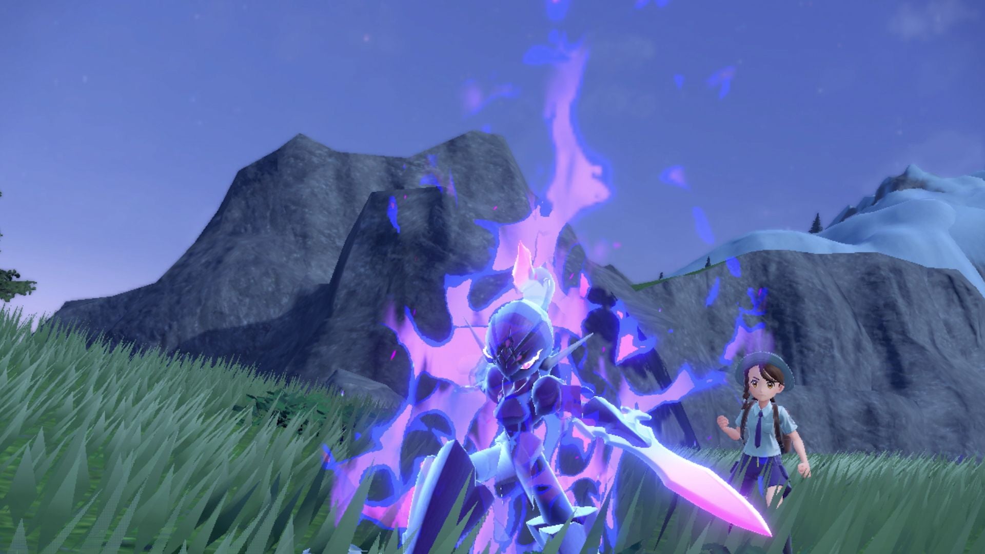 Ceruledge can be encountered in Violet. This Pokemon also resembles a knight, and has swords for hands. This "fire blades" Pokemon is a Fire/Ghost-type that uses the Flash Fire ability.