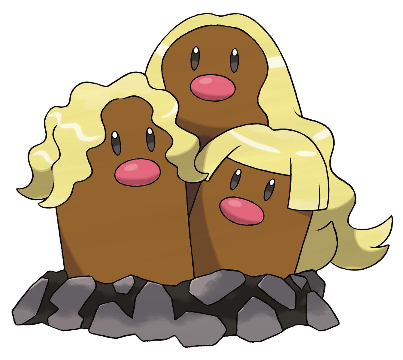 Alolan Dugtrio is the evolved form of Alolan Diglett. Alolan Dugtrio’s whiskers grow throughout its life at a very slow rate, shining with a brilliance akin to that of golden hair. In the Alola region, this Pokémon is revered as an incarnation of the god of the land, and it’s treated with great importance. Removing any of this Pokémon’s whiskers is strictly prohibited. There is a superstitious belief that many Alolan Dugtrio come out of their burrows on a day when a volcano will erupt