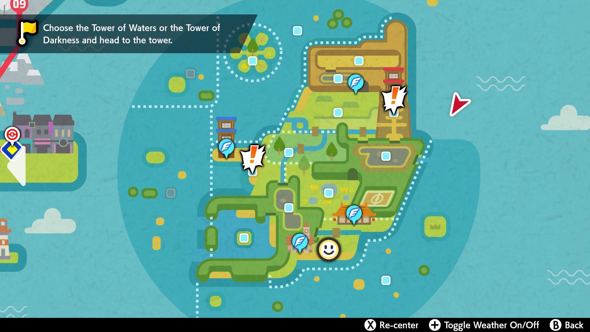 The Tower of Darkness is past the Forest of Focus, as though you were headed to the tunnel where you found the mushrooms again. Only this time, head right when you go out of the forest, up the curving path that raises up the mountain ahead. The Tower of Darkness is visible at the end of that path. If you're uncertain about which Tower to go against, remember that this relates to which Urshifu is better, which we've laid out a little further on.