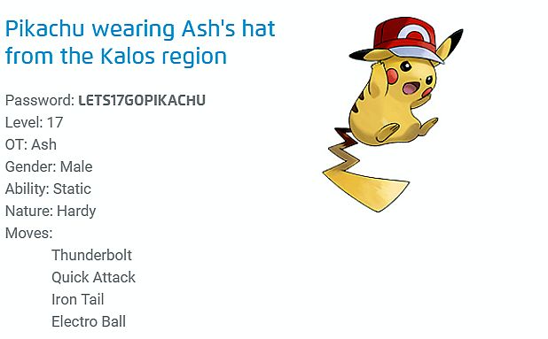 - Kalos region - Password: LETS17GOPIKACHU