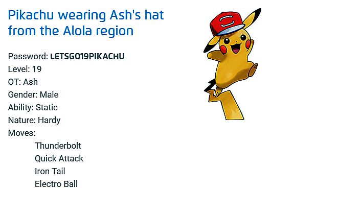 - Alola region - Password: LETSGO19PIKACHU