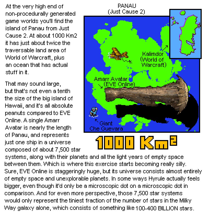 Home Articles Professor Sharkey's Bad Game Science: Exactly How Big Are Videogame Worlds? How big are video game worlds, really? Professor Sharkey investigates. Article by Scott Sharkey Contributor Updated on Sept. 30, 2014 Follow Just Cause 2 This article first appeared on USgamer, a partner publication of VG247. Some content, such as this article, has been migrated to VG247 for posterity after USgamer's closure - but it has not been edited or further vetted by the VG247 team.