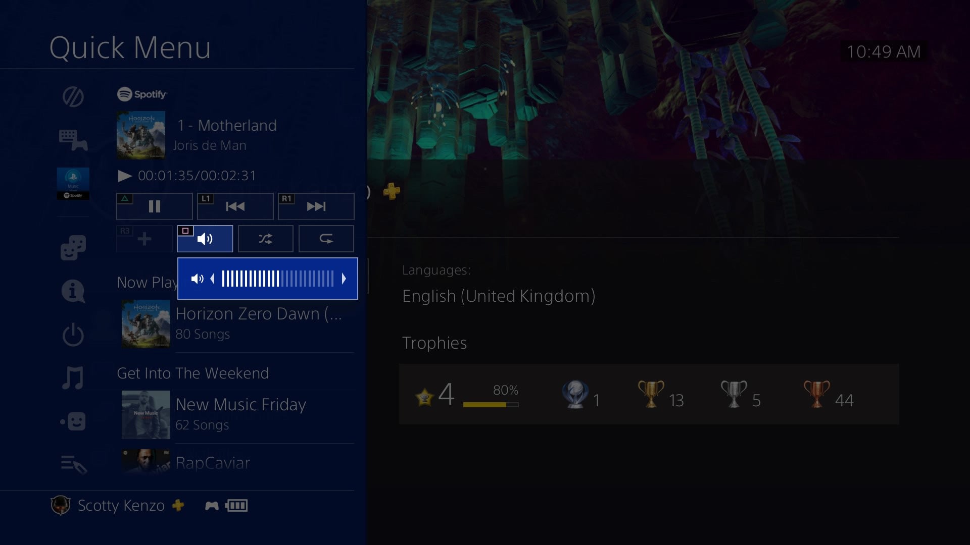The Friends tab in the Quick Menu now lets you quickly access specific friends, and it'll also show which of them are online. The Quick Menu has also been updated with more options when you're listening to music through Spotify. New handy shortcuts will let you control the volume and play/pause. This also works when you're playing music off a USB device.