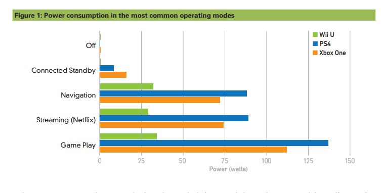 According to literature posted by the National Resources Deference Council (NRDC), Nintendo's Wii U is more efficient than PlayStation 4 or Xbox One which showed double the energy consumption compared to PS3 and Xbox 360, respectively.