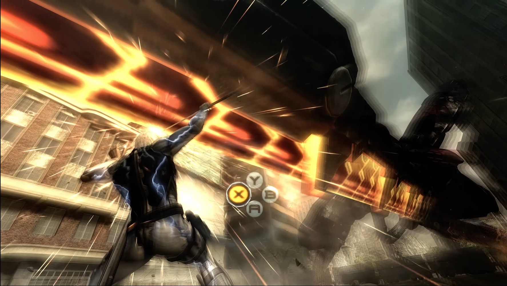 This time, the White Devil is armed with nothing but a sword (and his cyborg body). After wailing at your opponent's feet for a while, suddenly Ray's giant blade arm flies down onto Raiden… and you block it! The butt-rock kicks in, and you're asked to frantically mash the X button. You’re transported instantly into the shoes of Raiden as he wills himself to hoist that 70ft behemoth over his head like Hulk Hogan at Wrestlemania 3.
