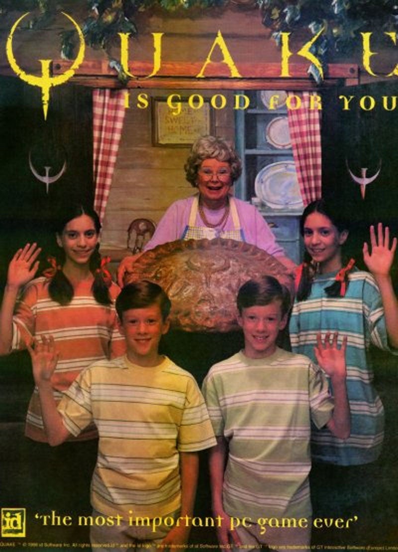 Quake's original marketing campaign painted the game as a family sojourn into pie-eating country, incredibly.