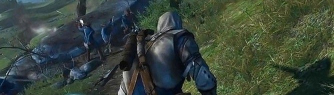 Four new Assassin's Creed III images show battlefields with crowds of soldiers and strewn corpses, with bonus tranquil wilderness paths.