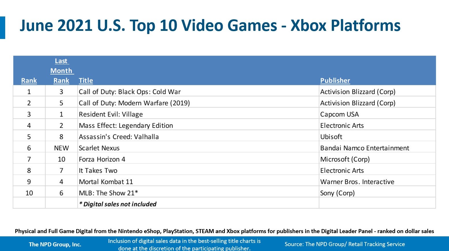 Xbox Series X/S was the best-selling platform in dollar sales, and sales of Xbox consoles set a new record for the Xbox platform, besting the previous high set in June 2011.