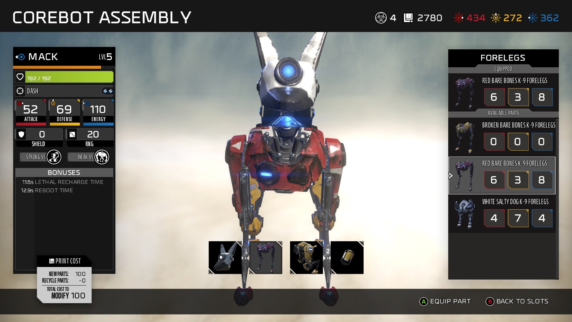 There's a choice to make though: extracted cores can be used to power up your companions' stats, but if you extract an enemy's core, they won't drop parts. You always have to ask yourself, "Do I need parts to craft new upgrades for my robot friends, or do I just need to buff their stats?" I found myself leaning hard on the former, as crafting parts from research blueprints tends to yield more immediate stat boosts and bonuses, as opposed to slowly pumping my team up using core fusion.