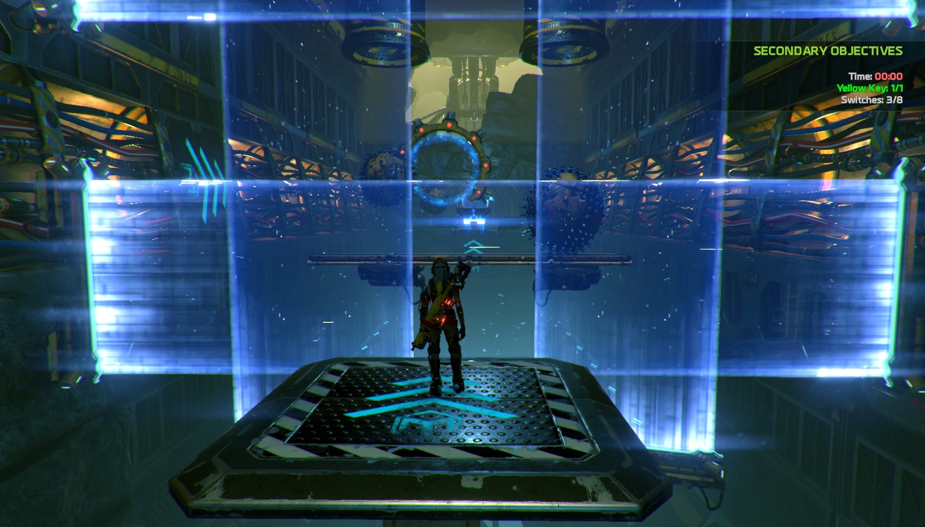 Mack is a blue core, infinitely happy and quick on the recharge for his special abilities. You're later joined by Duncan, a hefty red core that can destroy obstacles in your path, and Seth, a yellow core that's afraid of heights, but can carry Joule along elevated tracks like a spider. You'll also gain alternate frames that you can slot Mack, Duncan, or Seth's core into; Mack spent most of his time in the Flier frame for example, which lets Joule glide slowly to the ground.