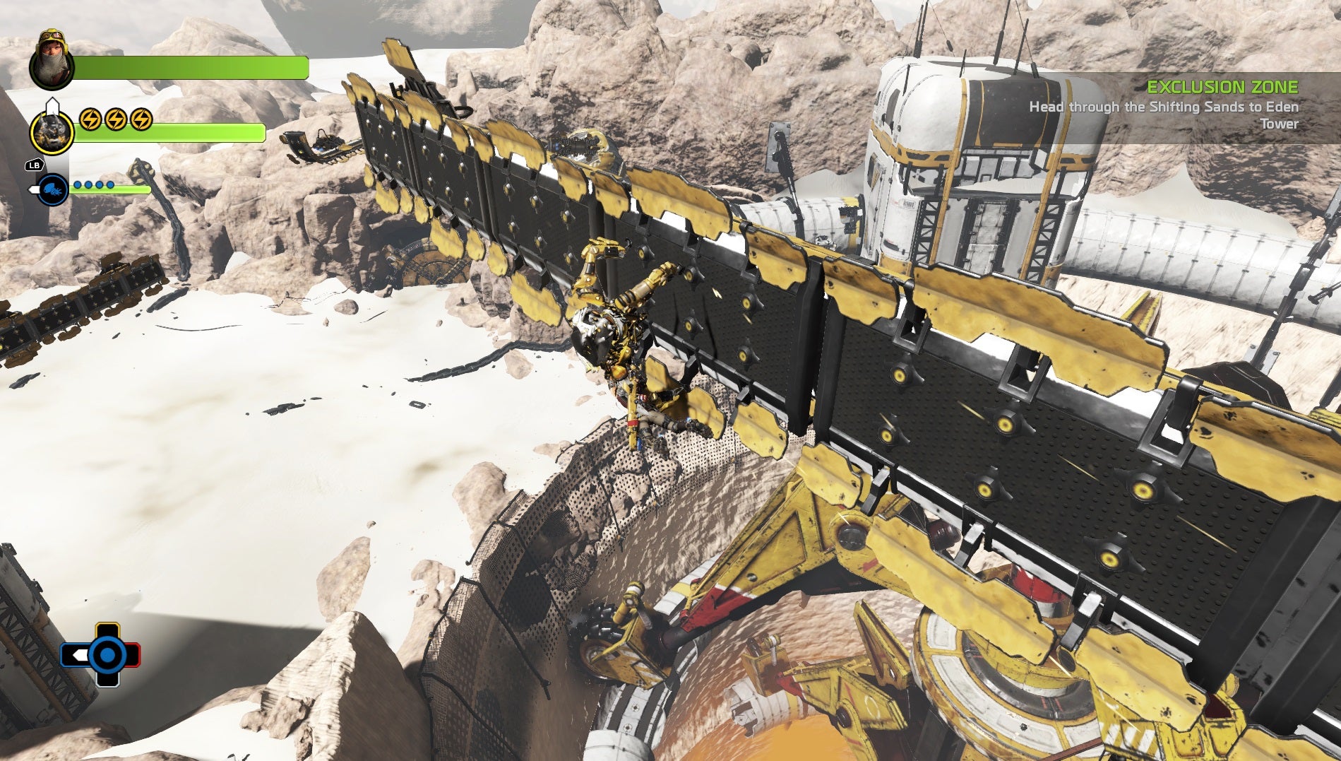 ReCore is largely divided between two modes of play: combat and exploration. Exploration is where ReCore shines the most. Clad in her exo-suit, Joule can do two jumps and dash before she has to land. She can pull herself up if you get close to an edge.
