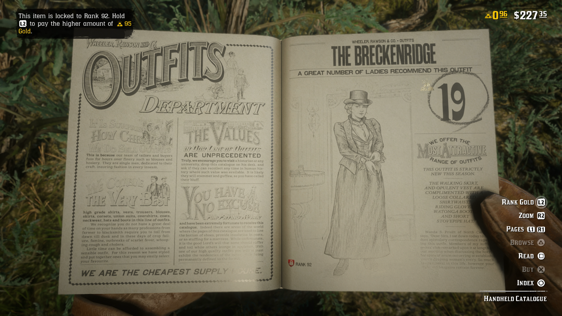 So what exactly can you buy with Gold in Red Dead Online? Well, it’s mostly used to purchase horses, weapons and clothing. You’ll see a Gold Bar icon next to items that can be purchased in the Catalogue. Not everything can be bought in this way, but Gold will give you access to higher level gear. Hold down the left trigger/L2 button when looking at an item in the catalogue, and you'll get the option to pay gold instead of cash, or to unlock it if you haven't ranked high enough yet.