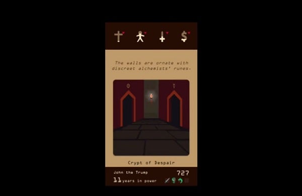 -The Senator turns out to be a woman in white. When you return to the kingdom, you become lovers. Make sure your actions keep the church happy, since your relationship with the institution depletes each turn. In three years, the woman returns and tells you that you need to trick the Devil.