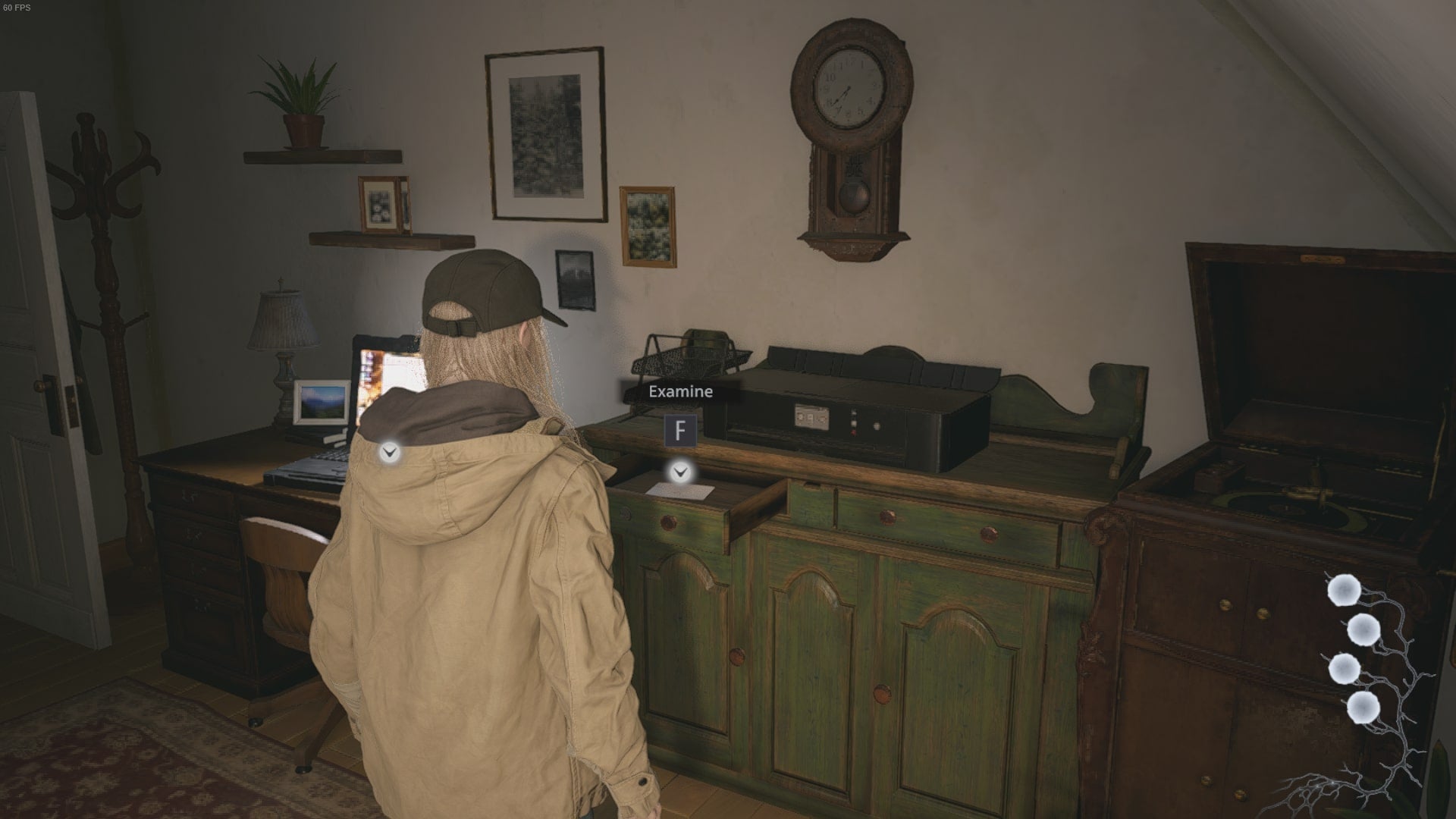 In the study, you’ll also find a wardrobe with a combination lock on it. Now, interact with the three points of interest noted above, in order. As a result, we’ll end up with a six-digit long number that can be used on the wardrobe’s lock: 024466.
