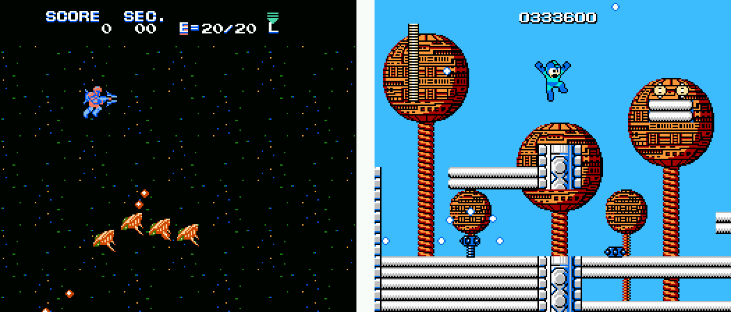 Where Capcom truly excelled, however, was in its original creations for NES. After an awkward start with the Japan-only adventure Higemaru Makai-Jima (an odd spinoff of Higemaru), Kitamura and his team developed the company's first truly significant home release: Mega Man. Despite some rough edges, Mega Man featured great platform shooting action — like a faster, less punishing Ghosts 'N Goblins — and a creative power-up system that, combined with its nonlinear level selection system, gave it a remarkable degree of replayability.