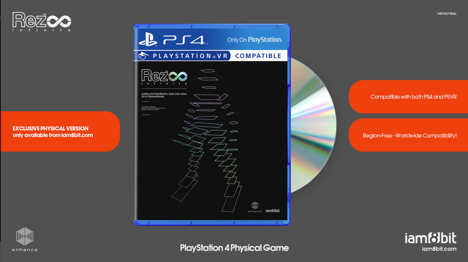 The physical editions of Rez Infinite will not be sold in stores, but are exclusive to iam8bit, which has both editions available for preorder. The standard edition is available to order now, the collector's edition opens up at 9:00AM PDT on August 19.